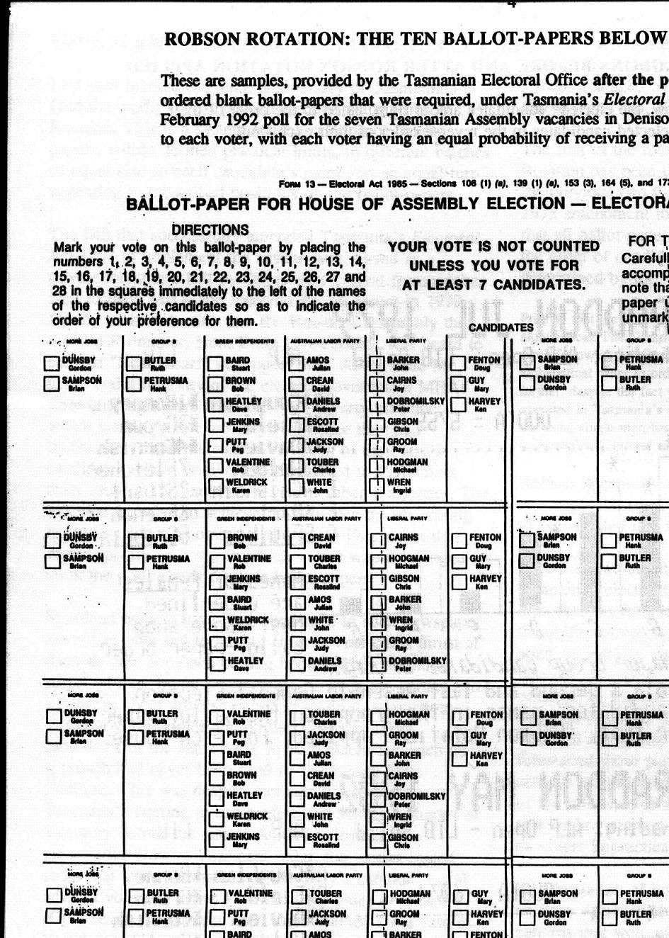 deemed valid. Tasmania's Hare-Clark system has always had partial optional