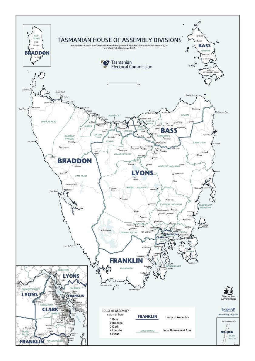 The motion led to the Premier, Hon. Jeremy Ratcliff MHA, deciding not to resign as Premier, but instead to advise the Governor, the Hon. Barbara Baker, to dissolve the Assembly, and to issue writs for a general election, which was held on 19 July 2025. The results, in each of Tasmania’s five seven-member divisions, are shown in Table 1 below.